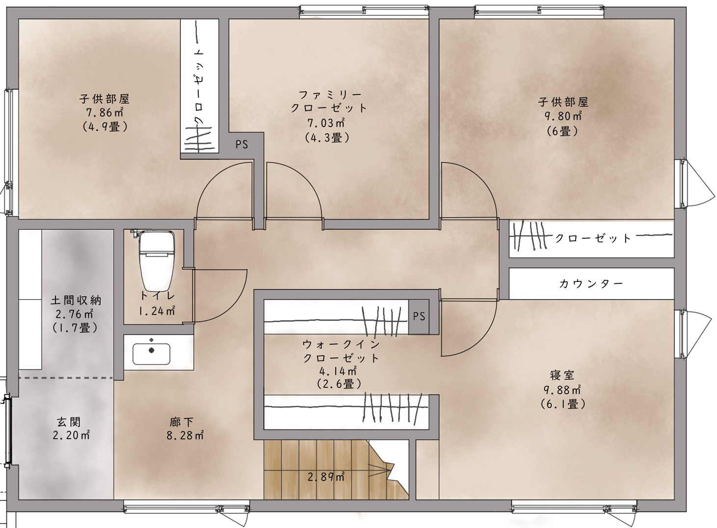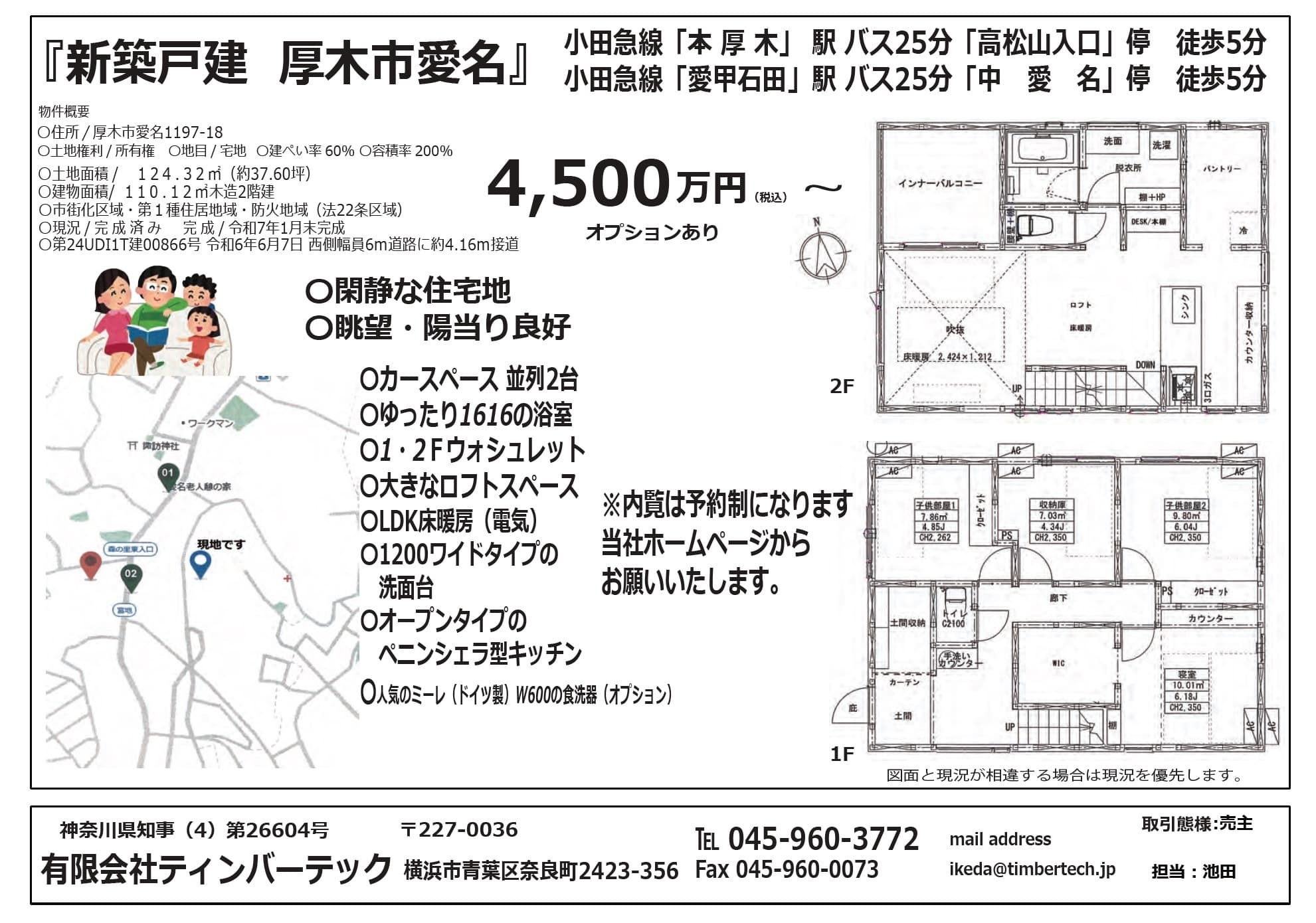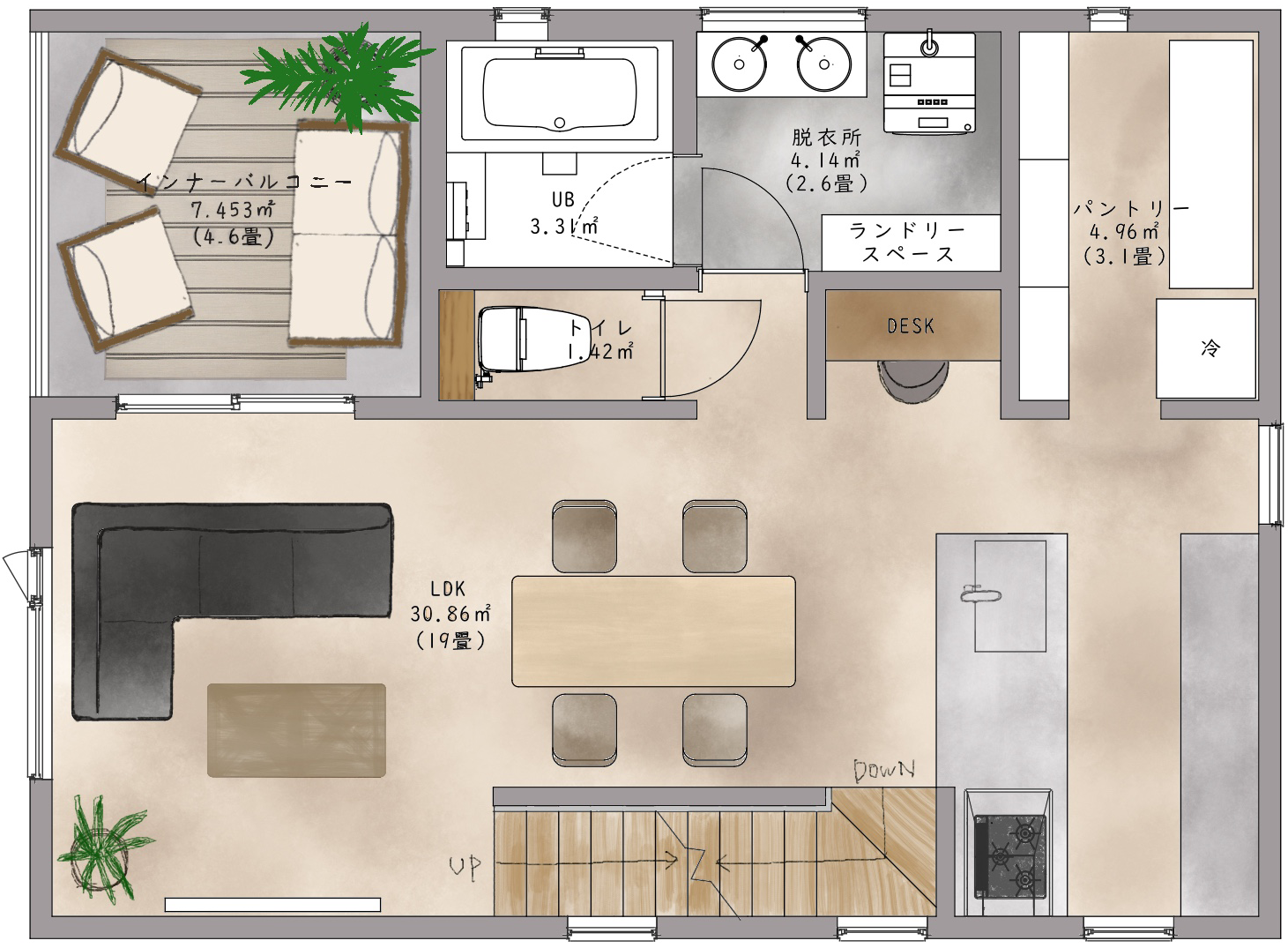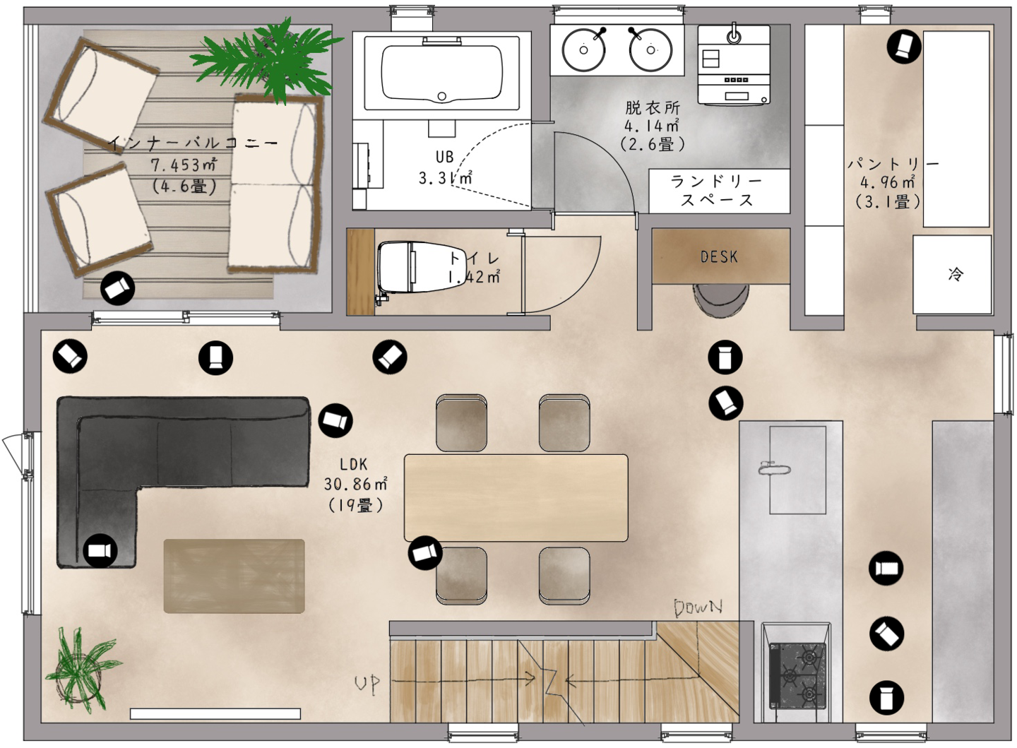 モニター付きインターホン・駐車場2台・自動洗浄タンクレストイレ・ミーレ食洗器(オプション)・インナーバルコニー・床暖房・ユニットバス1616・システムオーダーキッチン・パントリー収納部屋・エアコン(オプション)・大型ロフトスペース・高気密高断熱仕様